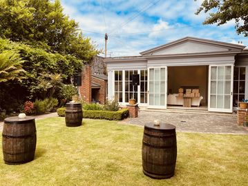 Large, vintage Jim Beam barrels, perfect for the rustic vibe. Fitted with a flat top so no wobbly glasses - can be used indoor and out