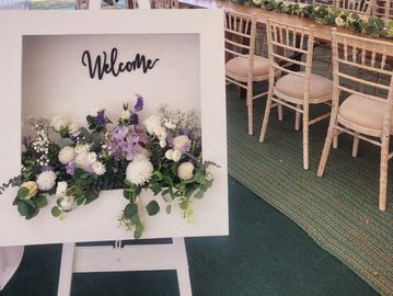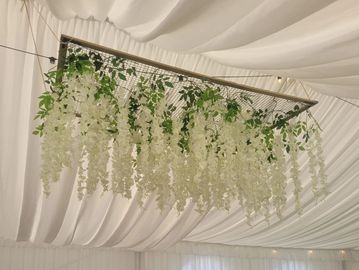 White wisteria hanging from a wooden frame, looks amazing over a dancefloor or top table. Can be customised to your colour scheme. From £200.00 installed