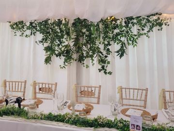Decorative foliage including three types of eucalyptus, bamboo, ivy and fern. Can be tailored for your theme 2.5m wide. From £150.00 installed