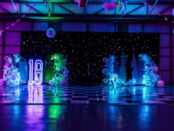 3m x 6m Backdrop for your event with static or twinkling lights. Blackout material can be used to cover walls or windows